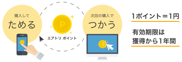 アプリ予約なら、航空会社のマイレージとは別に、エアトリ独自のポイントが貯まります。アプリなら還元率がアップするため、ブラウザで検索しても「予約は必ずアプリから」が鉄則です。
