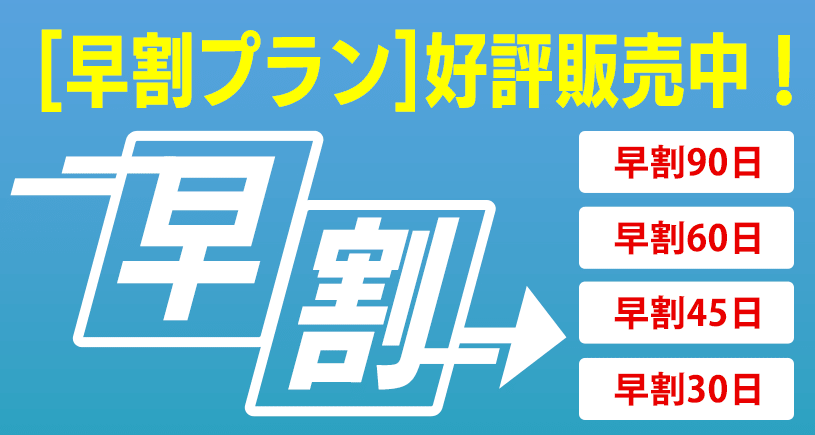 - 旅行日から早めに予約することで、割引が適用されるキャンペーンです。