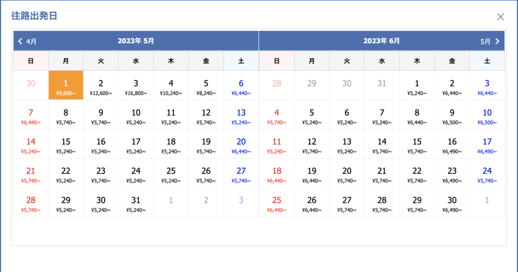 出発時間や料金順での並び替えはもちろん、2ヶ月先の料金をカレンダー形式で表示できるため、最安値を見つけやすいのが特徴。さらに、国内の主要航空会社(JAL、ANA)からLCC(Peach、ジェットスターなど)まで、複数社の航空券を一括で検索できるため、比較検討の手間が省けます。