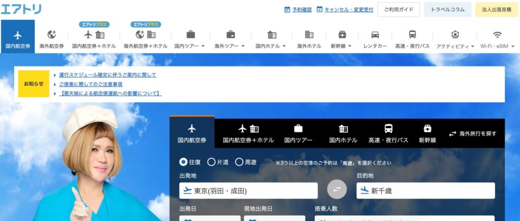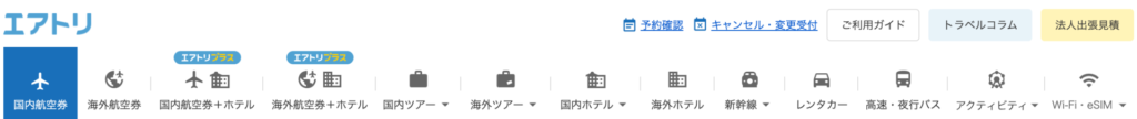 エアトリは、航空券だけでなく、ホテル、バス、新幹線、Wi-Fi、海外ツアーなど、旅行に必要なあらゆるサービスをまとめて予約できます。