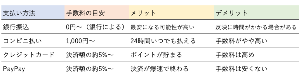 - 少しでも安くしたいなら: 振込手数料無料枠を使って「銀行振込」