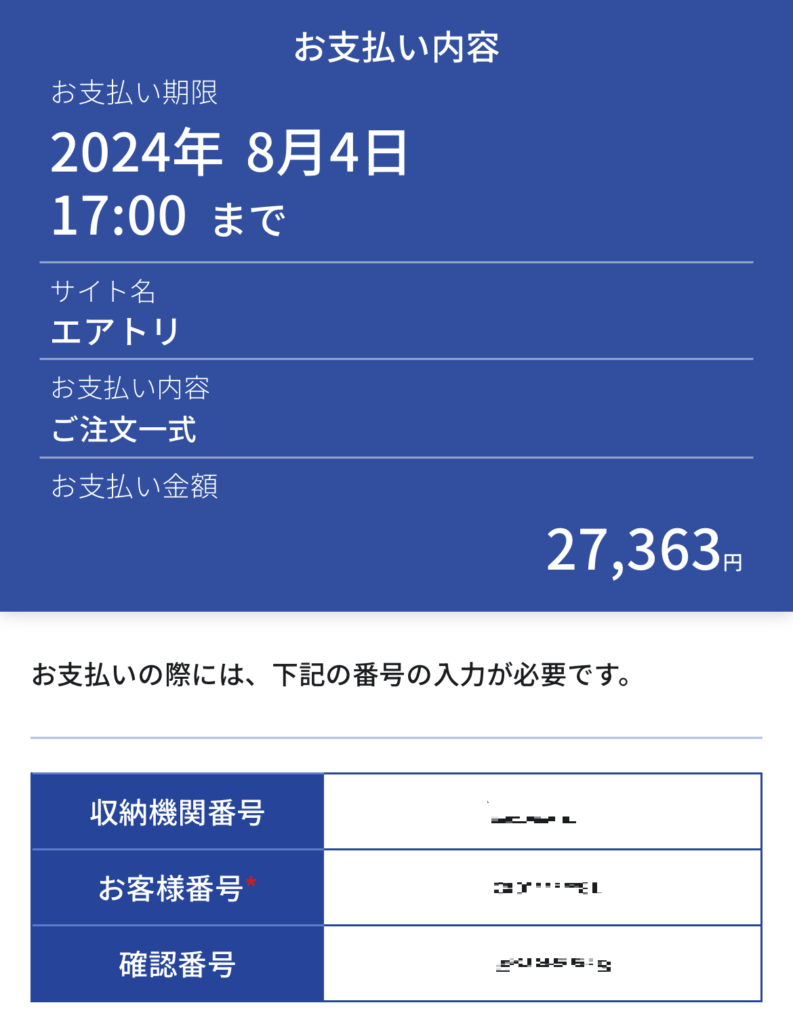 ・デメリット: 銀行の営業時間外(土日祝など)に振り込むと、エアトリ側での入金確認が翌営業日になり、その間に航空券の価格変動や満席リスクが生じる可能性があります。
