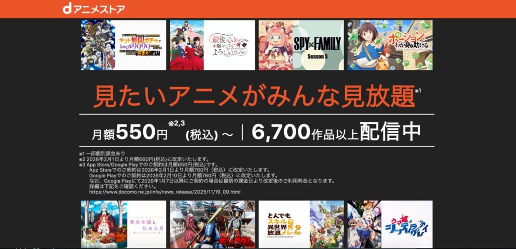 ※ dアニメストアは2026年2月より月額660円(税込)への改定が予定されています。