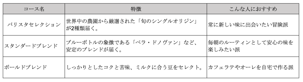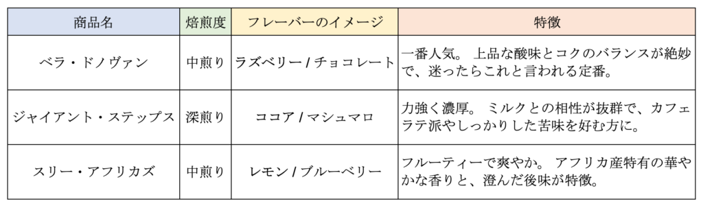 ブルーボトルには多くの豆がありますが、この3種を飲み比べることで「自分は酸味のあるフルーティー派(スリー・アフリカズ)か、どっしり苦い派(ジャイアント・ステップス)か」が明確になります。次回の注文で失敗しなくなる、いわば「スターターガイド」のようなセットです。