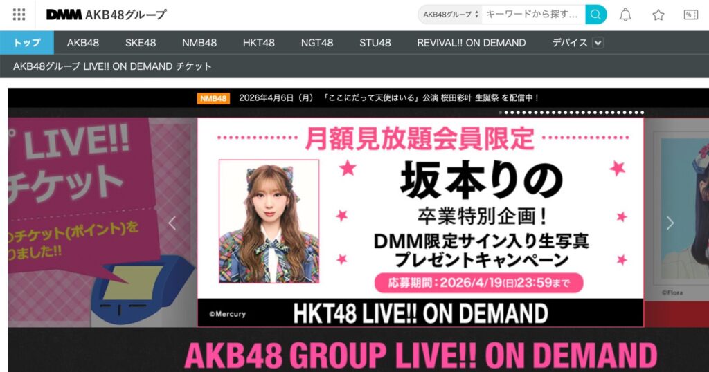 AKB48グループ:月額見放題、単品購入。