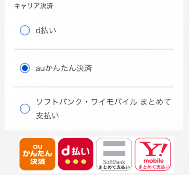 - キャリア決済: ドコモ、au、ソフトバンクの料金と一緒に支払い(一番手軽!)。