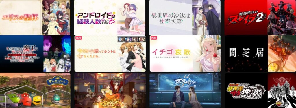 DMM TVはアニメを「入り口」としています。最新クールのアニメ放送枠を大量に確保し、独占配信や最速配信を行うことで、広告費を抑えつつ効率的に会員を集めています。