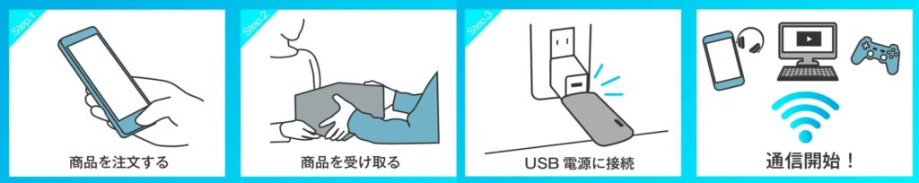 - 契約不要・縛りなし!:面倒な契約手続きや、期間の縛り一切なし。使いたい時に必要なデータ量をチャージするだけ。
