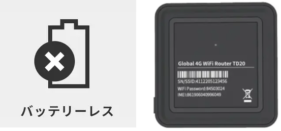 これにより、バッテリーの熱膨張や発火といったトラブルのリスクが完全に排除されます。「安全に長く使える」というのは、モバイルWi-Fiを選ぶ上で非常に重要なポイント。TD20は、あなたの「安心」を第一に考えた設計です。