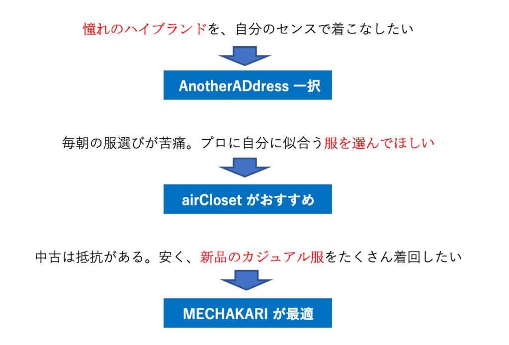 - AnotherADdress: 「今日はマルジェラを着たい」「このMARNIのスカートを試したい」という、あなたの「着たい意欲」を叶えてくれます。百貨店で試着するあの楽しさを、自宅で再現できます。