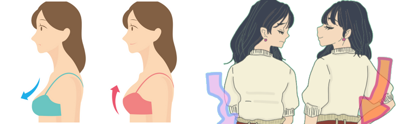 2. カップの中でバストが動く(ズレる) 腕を上げた時にアンダーがずり上がったり、カップに隙間ができるようになったら、ホールド力が失われています