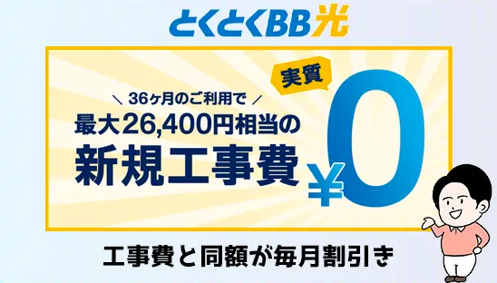 通常なら2万円以上かかる開通工事費が、36回払いの月額割引により実質無料になります。さらに、いつ解約しても違約金(解約金)がかからないため、急な引越しや乗り換えの際も安心です。