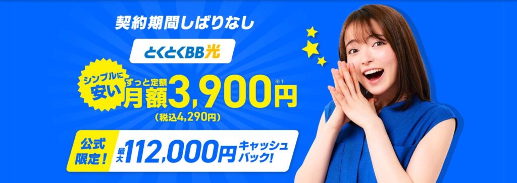 多くの光回線が「2年目から値上がりする」「複雑なオプション加入が条件」という中、GMOとくとくBB光は「ずっと変わらない安さ」が売りです。