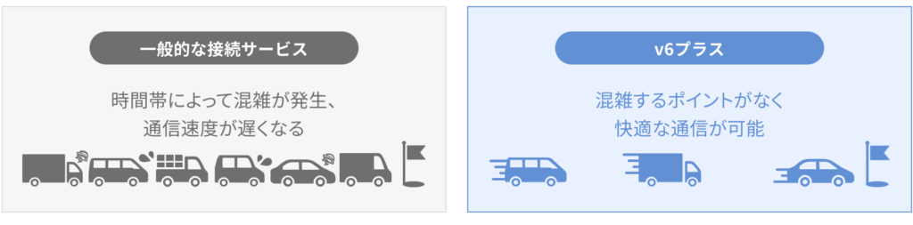 - 10ギガ専用の帯域設計により、混雑時も速度が落ちにくい(v6プラス対応)