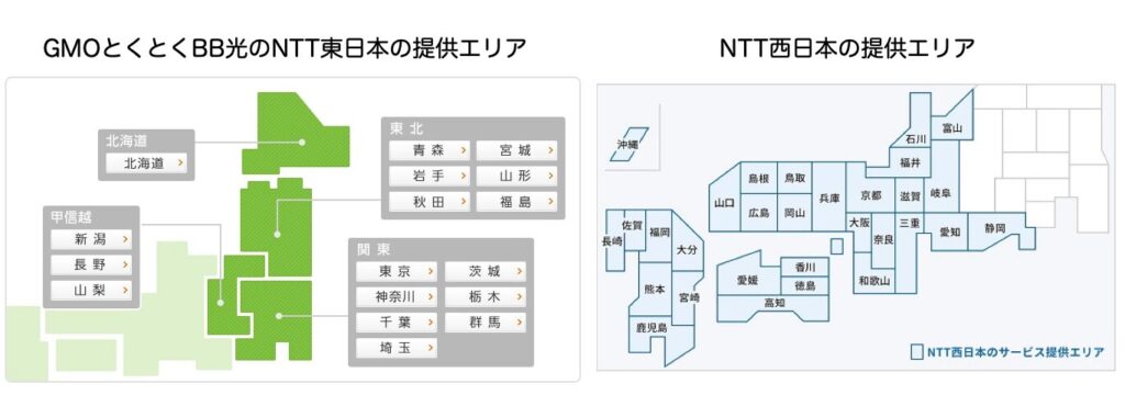 対応エリア(NTT東日本・西日本)を必ずチェック