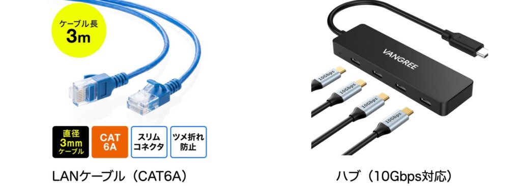 - LANケーブル: 「カテゴリ6a(CAT6A)」以上を使用してください。