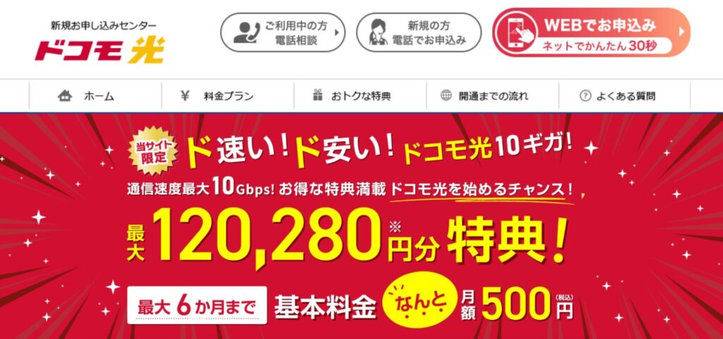 • 10ギガプランが熱い: 最初の6ヵ月間、10ギガプランが無料で利用できる驚きの特典があります。