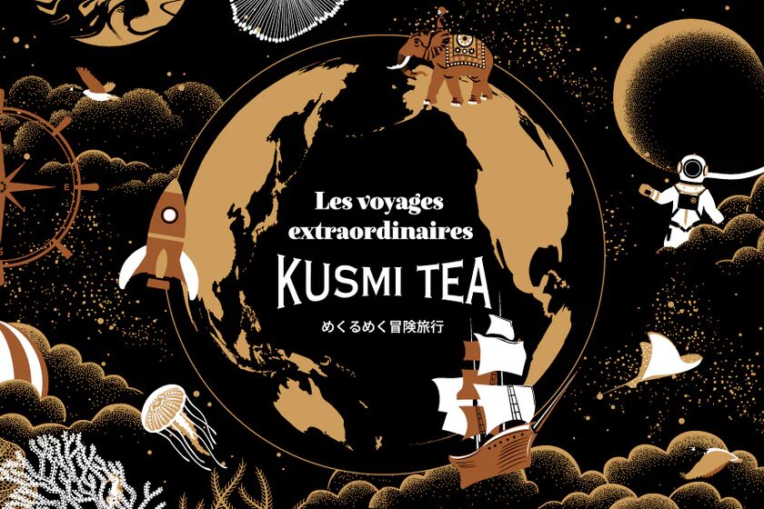 今年のクスミティーは、ジュール・ヴェルヌの不朽の名作「80日間世界一周」「海底2万マイル」「月世界旅行」の3作品をモチーフに、それぞれの世界観をティーのフレーバーとパッケージデザインで見事に表現しています。