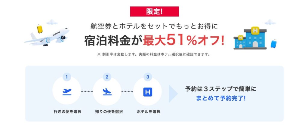 ③ 航空券+ホテルセットもチェック!思わぬ掘り出し物が!