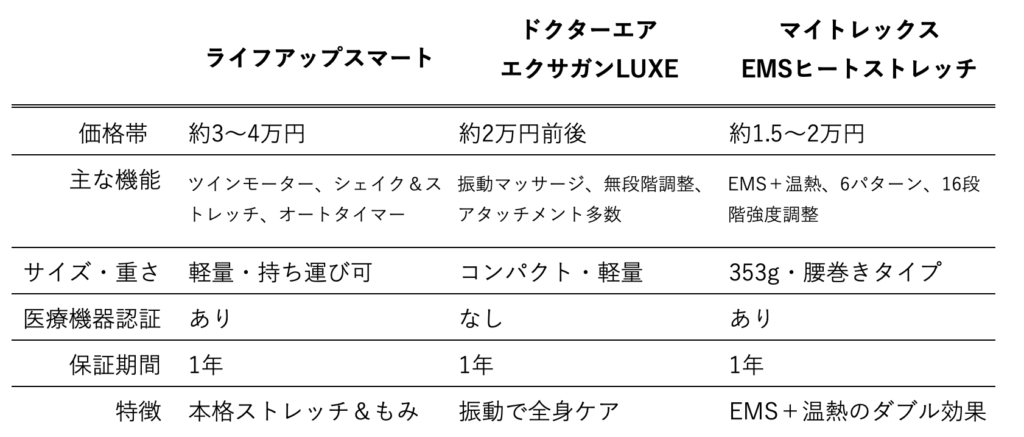 比較①:マッサージ機能の違いは?「もみ」「振動」「EMS」あなたはどれを選ぶ?