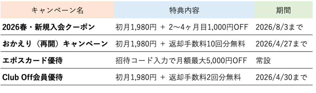 現在、2026年春のファッションシーズンに合わせて、以下のキャンペーンが同時開催されています。