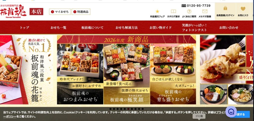 板前魂冷凍・60種以上・マイおせちなどカスタマイズ性・累計338万セット。コスパ重視で好み別に選びたい家庭。