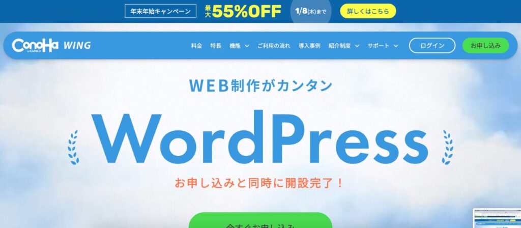 現在、初心者に最も選ばれているConoHa WINGを例に、ブログを開設するまでの流れを解説します。