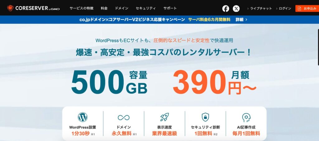 とにかく安く、でも高機能なサーバーを使いたいならコアサーバー一択です。