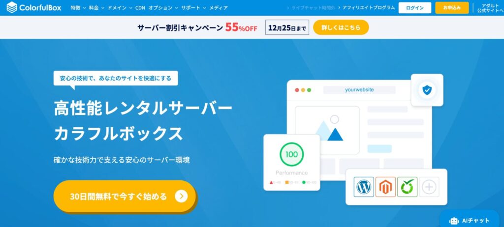 - 管理画面が非常に見やすく、**「WordPressかんたんセットアップ」**を使えば、ドメイン取得からサイト開設まで最短10分で完了します。