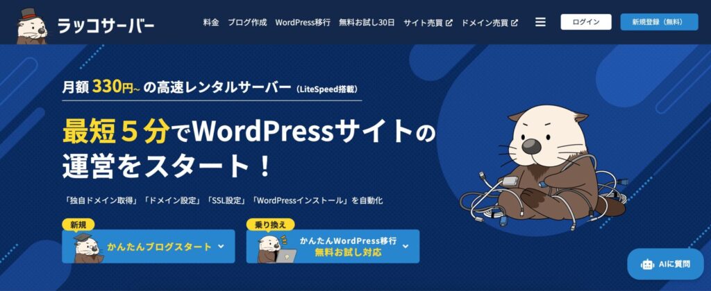 | ラッコサーバー | 990円〜 | 400GB | メール | サイト売買(M&A)との連携が強力 |