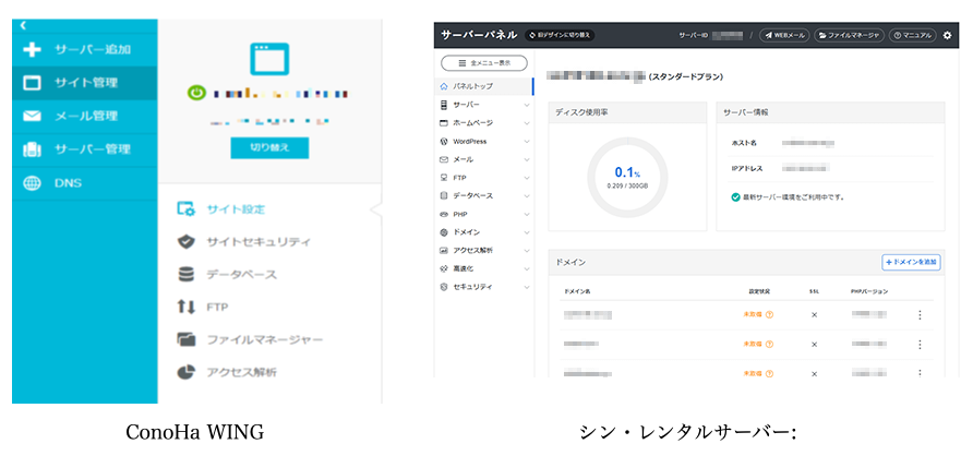 - シン・レンタルサーバー: 昔ながらの「サーバーパネル」形式。多機能ですが、初心者には少し項目が多く感じられるかもしれません。