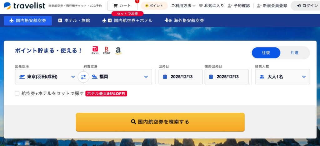 次回の旅行がお得になるかどうかは、今のチェックにかかっています。まずは希望の日程で、どれくらい安くなるか検索してみましょう。