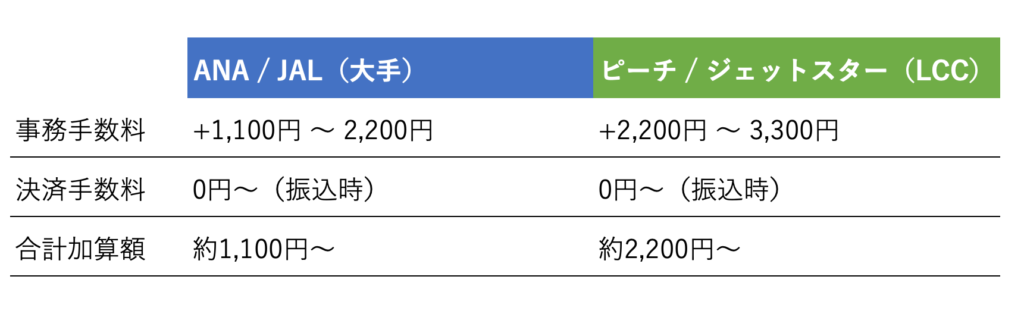 航空券代金以外にかかる「事務手数料」