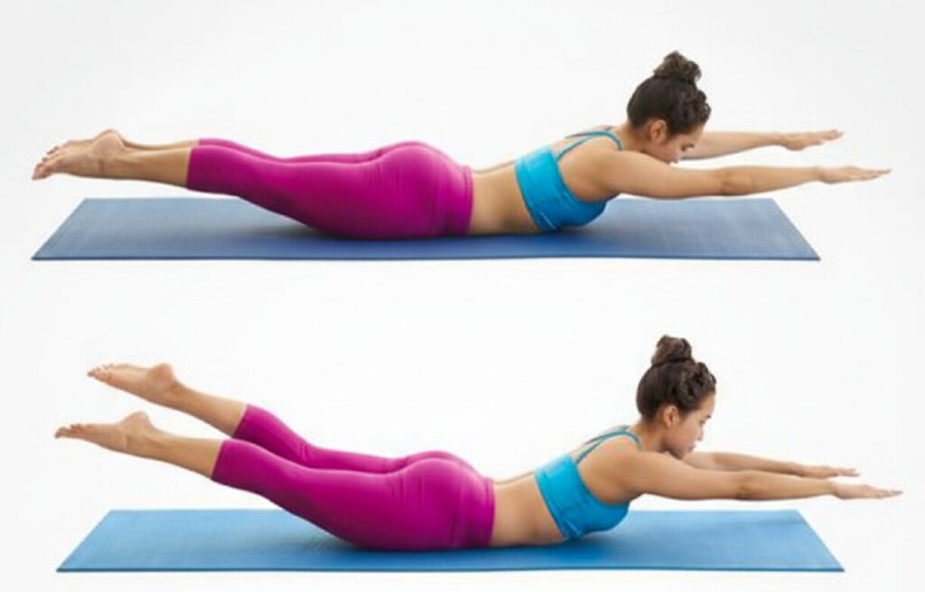 うつ伏せで手足を交互に持ち上げる動き。背中全体と体幹を鍛え、引き締まった上半身を目指せます。