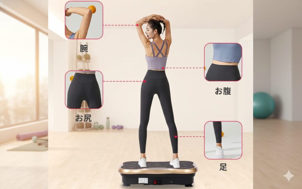 乗るだけで全身の筋肉を振動させ、エクササイズ効果や血行促進を促すマシンです。運動が苦手な方でも手軽に始められ、代謝アップの一助となります。ただし、あくまで補助的な役割として、ストレッチや軽い運動と組み合わせるのがおすすめです。
