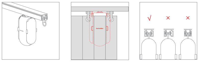 カーテンレールの1番目と2番目のランナーの間に本体を引っ掛けるだけ。