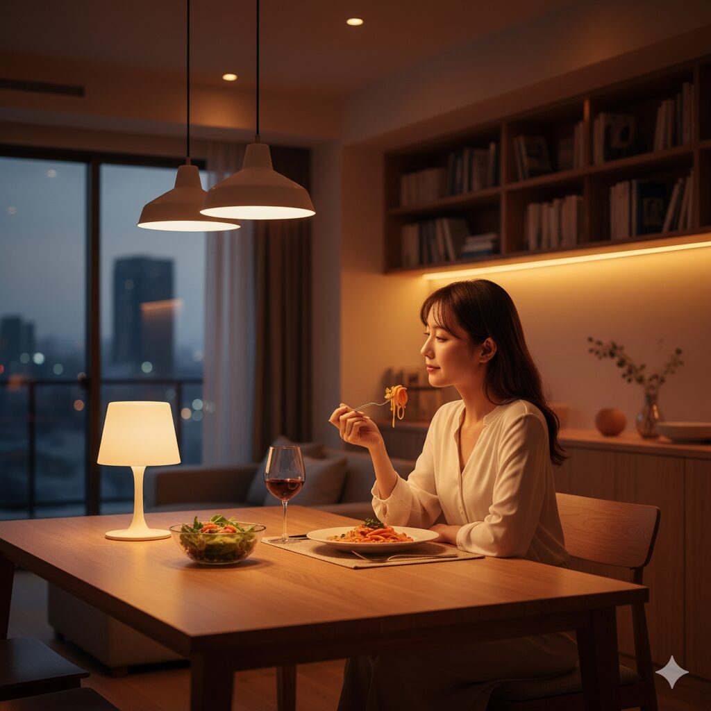 次に導入したのはスマート照明。これを使うと、照明のON/OFFだけでなく、明るさや色もスマホや声で自由に変えられます。