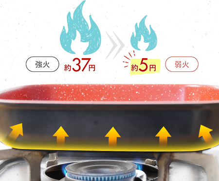 厚みのある構造で熱をしっかり蓄えるため、ハンバーグやステーキも外はカリッと、中はジューシーに。 電気代・ガス代の節約にもつながる経済的な設計です。
