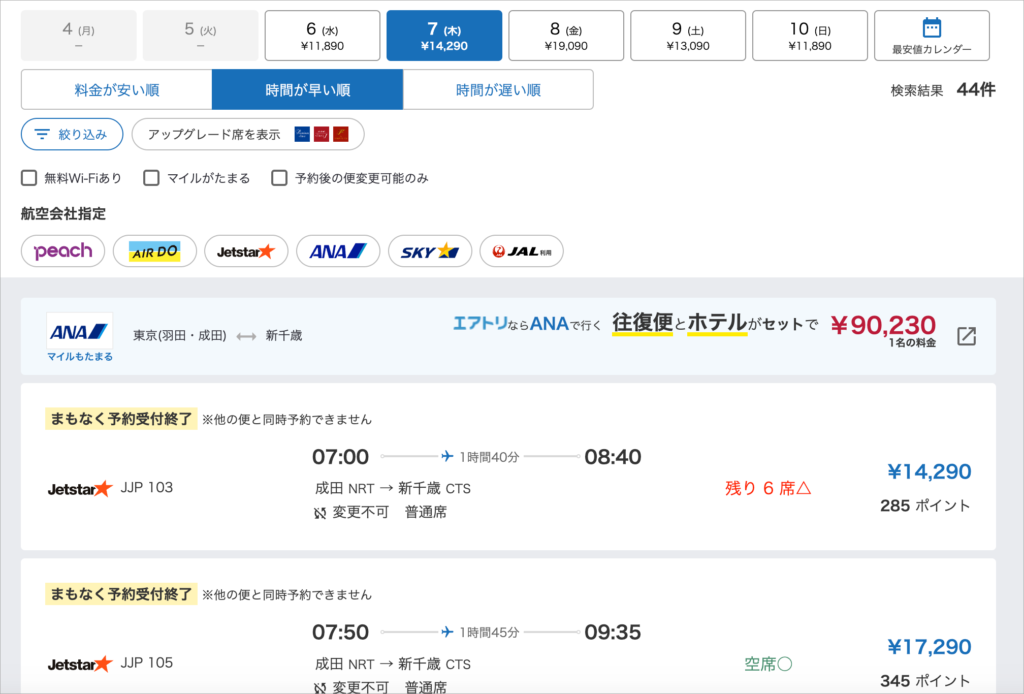 ワンポイント : 航空券単体では、スカイチケットの方が数百円安くなる傾向にあります。ポイントを考慮しても、今回のケースではスカイチケットに軍配が上がります。