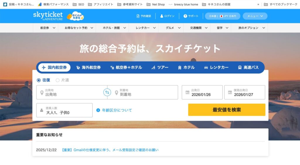 【ブロガーの視点】航空券単体で購入し、一回きりの利用ならスカイチケットに軍配が上がることが多いです。