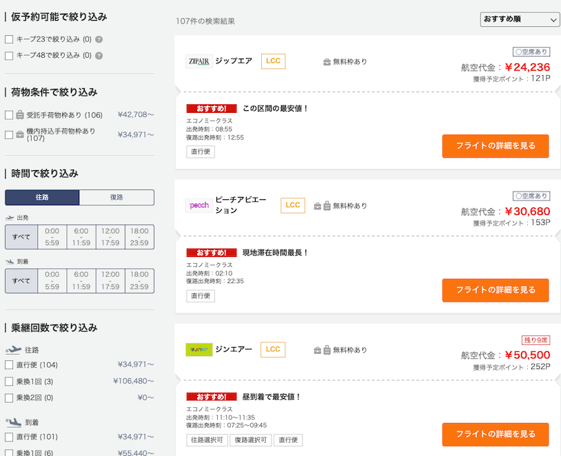 JAL・ANAのレガシーキャリアからLCCまで一括比較の強み