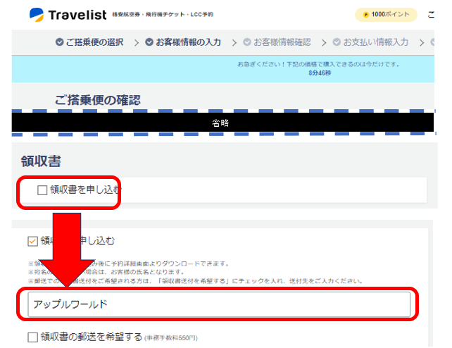 トラベリストに限らず、格安予約サイトでは「航空券代金+事務手数料」が最終的な支払額になります。決済画面で表示される「お支払い合計額」を必ず確認し、納得した上でボタンを押しましょう。
